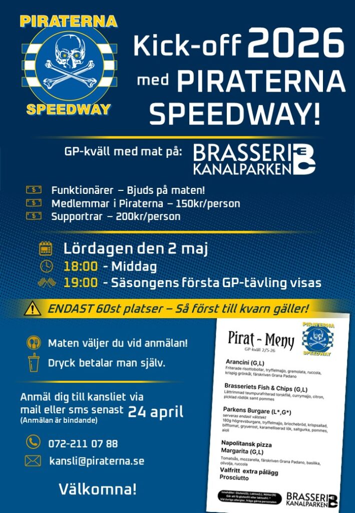 Piratveckan kommer att publiceras varje måndag fram till seriestarten i början av maj. Här kan du se hur våra pirater kört den gånga veckan. Oskar Fajfer Individuell tävling Polska mästerskapen kval 9p (3,1,EX,3,2) Damian Ratajczak Individuell tävling Polska mästerskapen kval 11p (2,3,2,1,3) Individuell tävling Polska juniormästerskapen kval 5p…