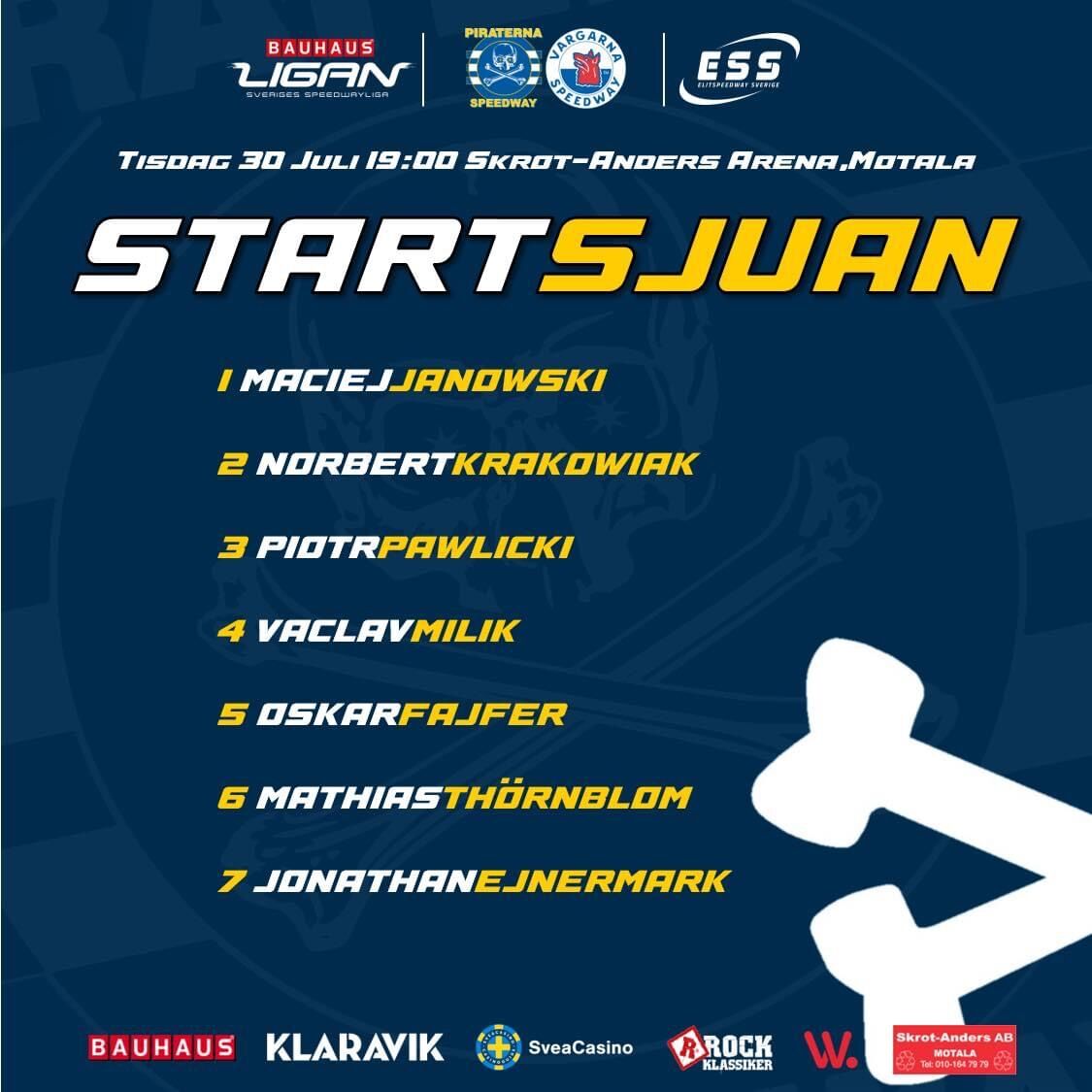 Minst lika viktig ikväll blir Maciej Janowski i väst 1. Magic, som hittills varit vår bästa förare, har visat upp mycket god form i Polen och även i helgens SEC-tävling. Här hoppas och tror vi på många viktiga poäng. Viktigt om vi ska kunna segra mot våra rivaler.
