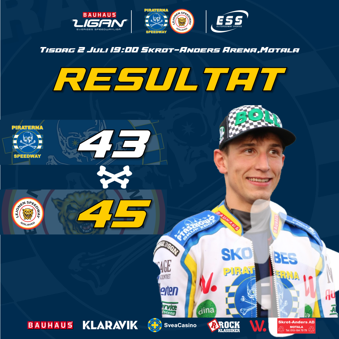Vår lagkapten Oskar Fajfer i väst 4, kommer bli oerhört viktig för oss detta möte. Åker hela tre heat utav de inledande sju heaten och får bära ett litet tyngre ansvar. Men det har Oskar lyckats med tidigare och vi sätter han på denna position för att vi vet att han kommer klara av det.