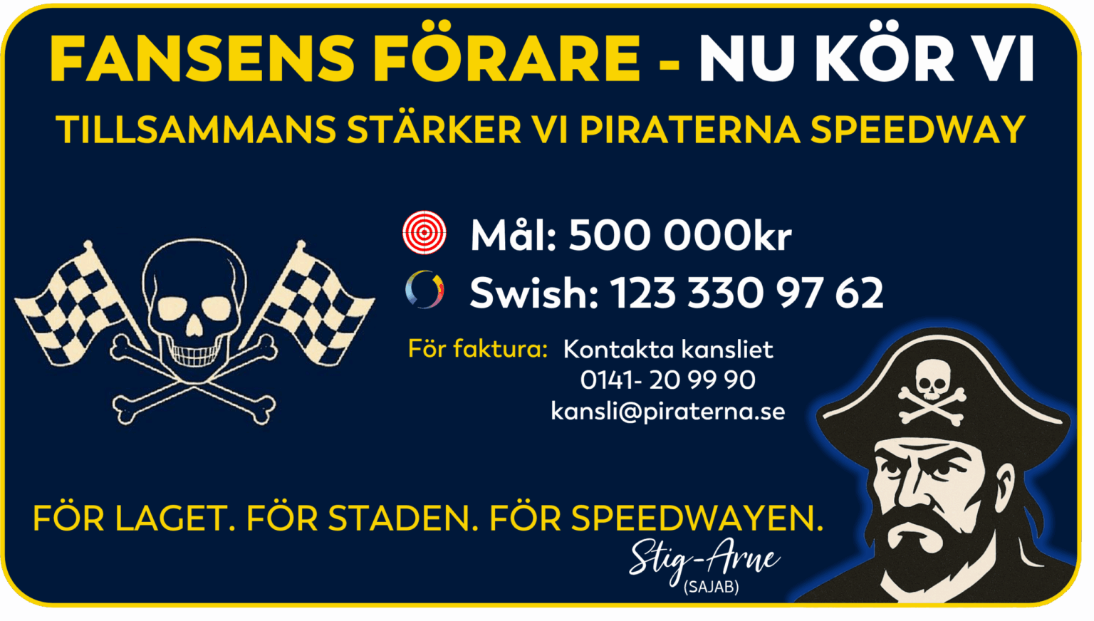 FAKTURA: kontakta kansliet – 0141-20 99 90 – kansli@piraterna.se