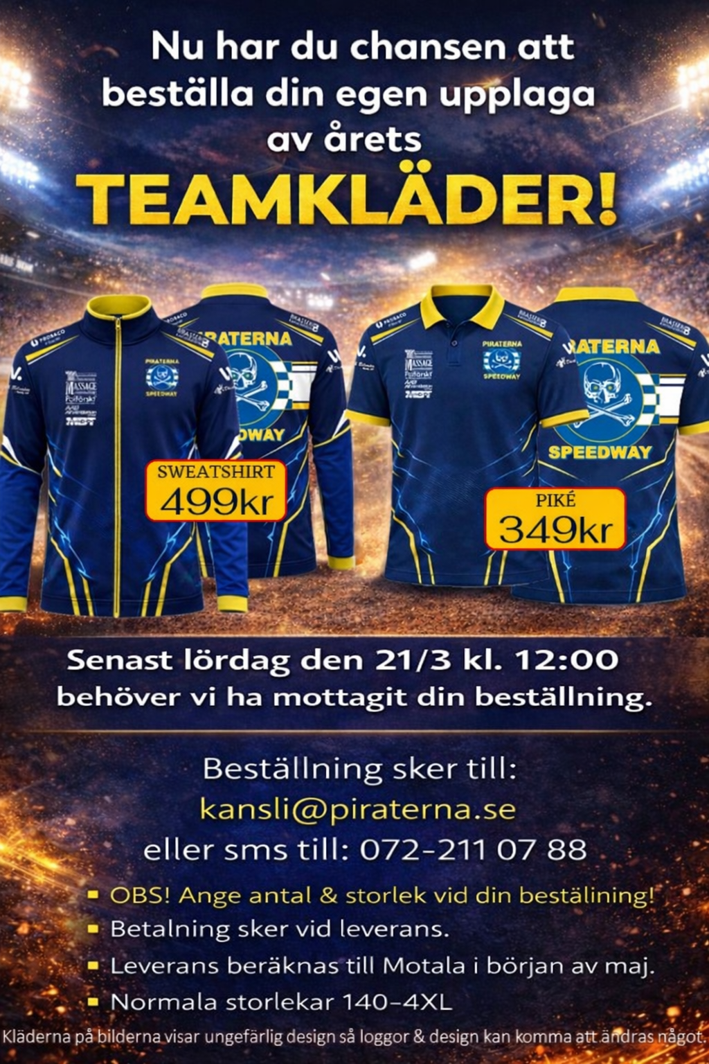 Beställning sker till: kansli@piraterna.se eller sms till: 072-211 07 88