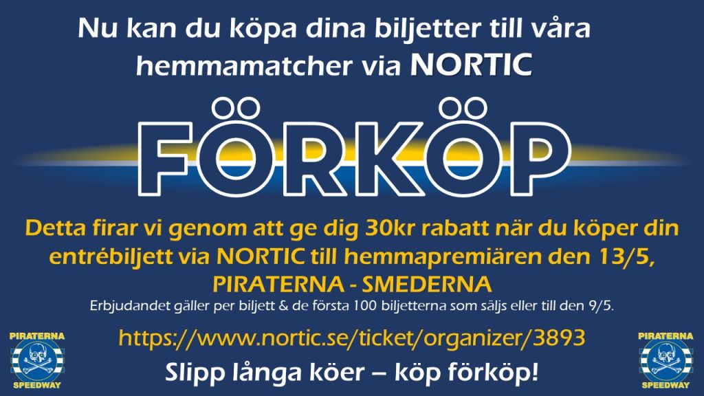 Nu börjar vi vårt samarbete med NORTIC för att göra det smidigare för dig! Du kan nu köpa din entrébiljett online, även din sittplats! Slippa de långa kassaköerna & få din biljett direkt i mobilen. Gå in på: Evenemang av Piraterna Speedway Nu ger vi även de första 100 som…