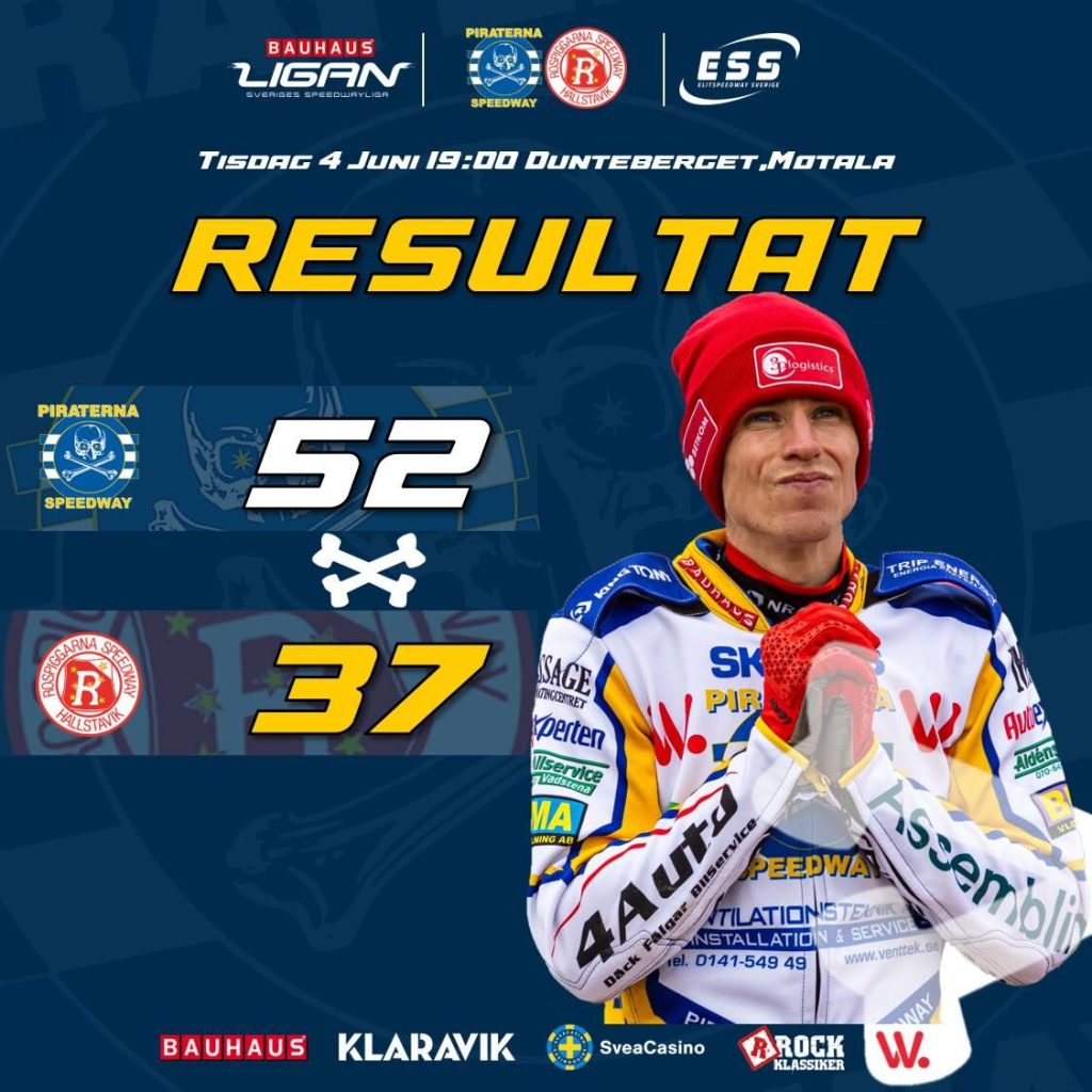 Denna gången 52-37 mot Rospiggarna, kvällens förarpoäng kommer här nedan. 1. Maciej Janowski 10+2p 2. Pawel Przedpelski 6+1p 3. Przemyslaw Pawlicki 11+2p 4. Vaclav Milik 7+1p 5. Piotr Pawlicki 12+1p 6. Jonathan Ejnermark 2+1p 7. Mathias Thörnblom 4p Matchrapport kommer under morgondagen