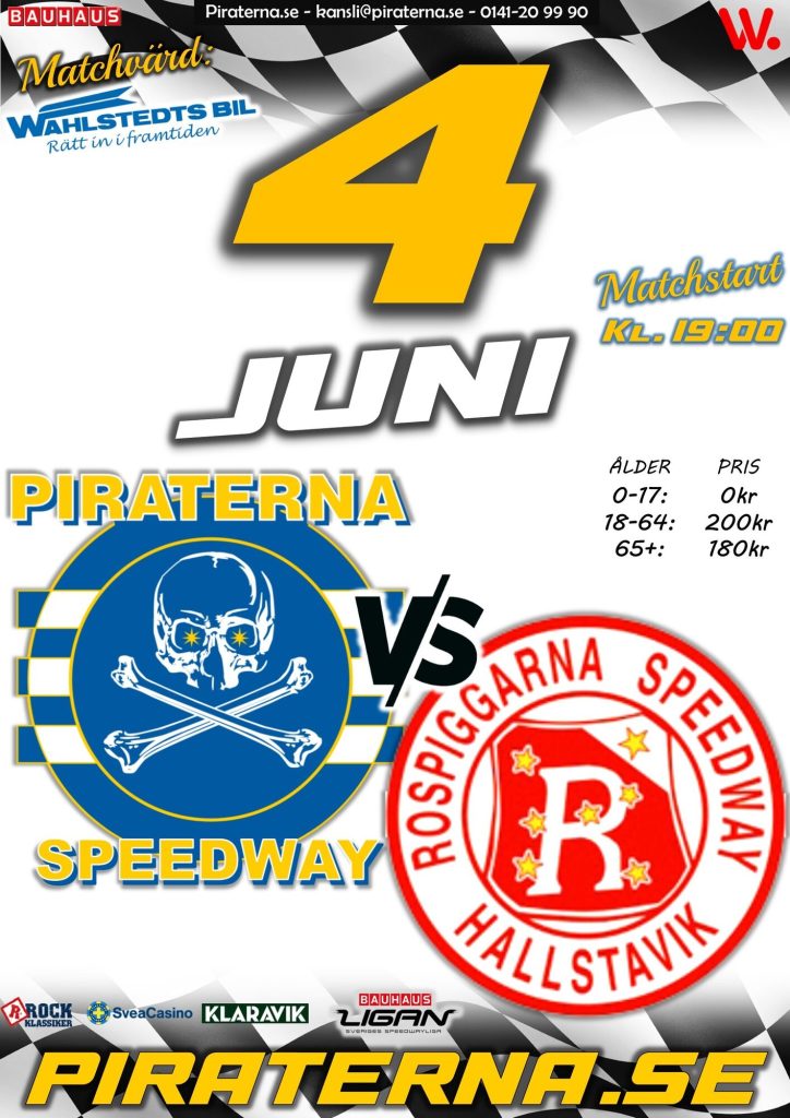 Matchvärd: Wahlstedts Bil Matchstart kl. 19:00 Vi öppnar grindarna till arenan kl. 17:00 Mopedrace 18:15-18:45 Samt final i paus! Med bl.a. Tony Sundqvist, Böna Olsson och Brassen Walfridsson Välkomna!